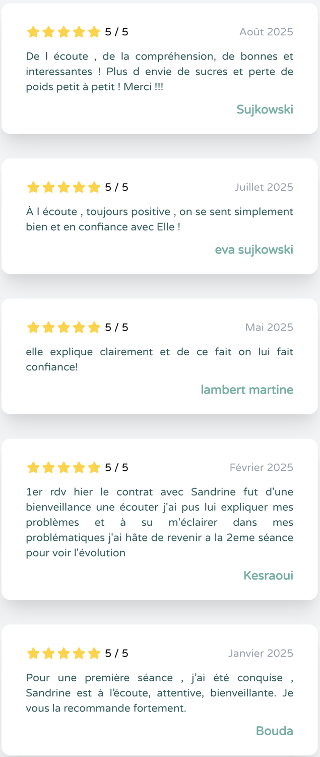 L'anxiété, les addictions, le surpoids, effets indésirables de la ménopause, insomnies, troubles alimentaires, manque de confiance et d'estime en soi...